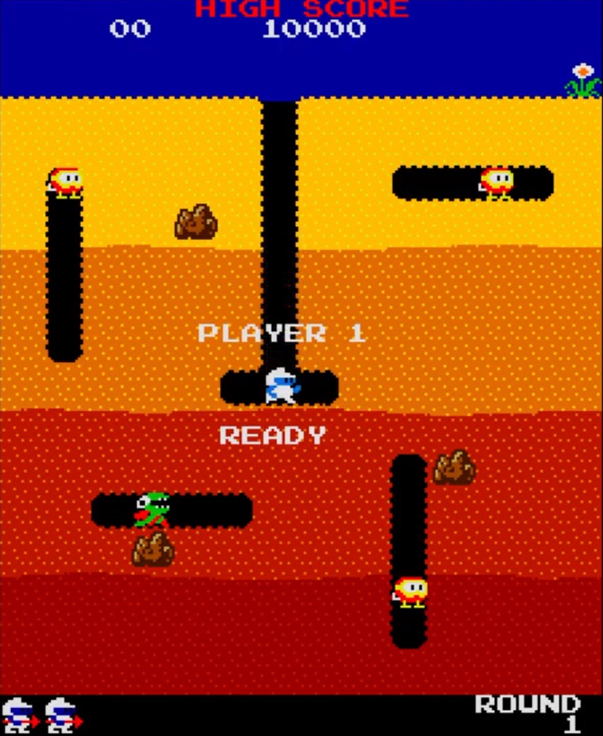 レバーで主人公ディグダグを操作、移動先に